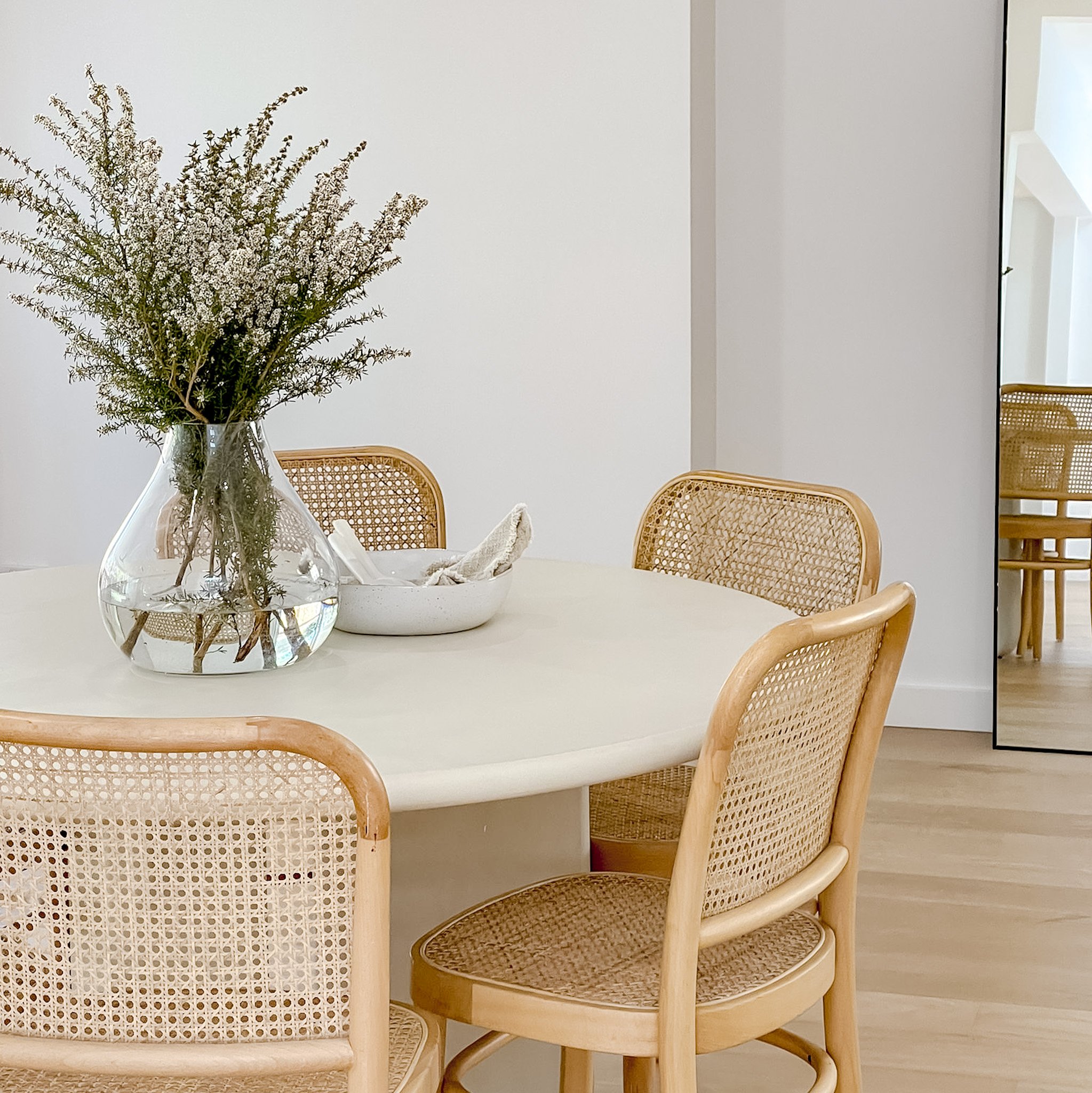From a styling perspective, you can introduce this trend through shapely sofas, mirrors and accessories. At Spatial, we’ve designed and built a custom range of organic shaped dining, coffee and side tables that are some of our most loved pieces, reflecting the beautiful shapes found in nature and adding a softness to the properties we style.